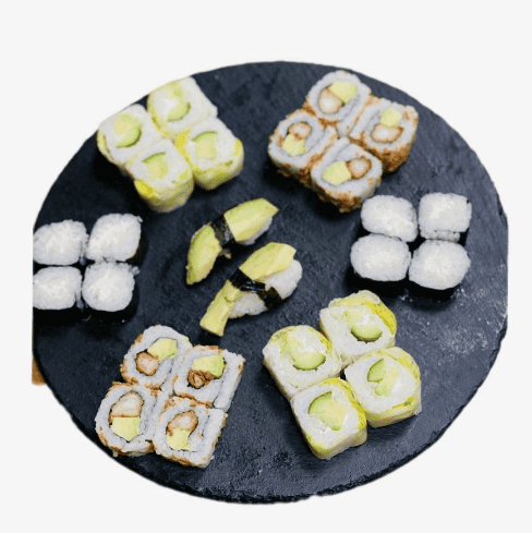 8 California poulet avocat mayo , 8 printemps concombre avocat cheese ,8 maki cheese , 2 sushi avocat 🥑🥑 26 pièces